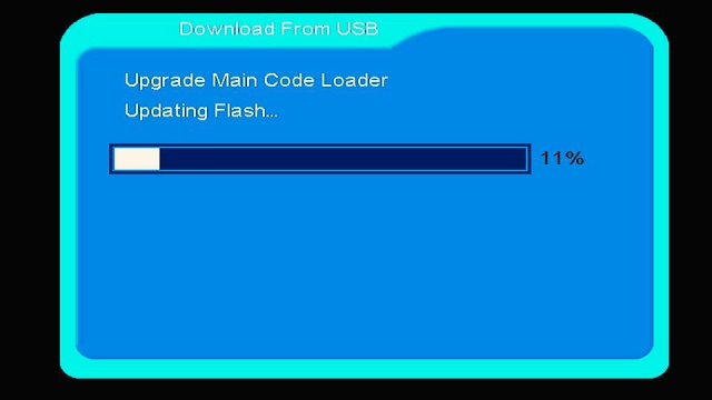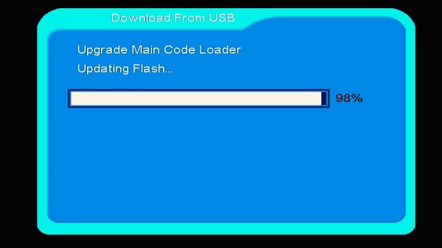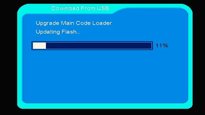 4-قم بتوصيل الكهرباء للرسيفر يقوم الرسيفر بتحميل السوفت تلقائياً و تشاهد عملية تقدم التحميل