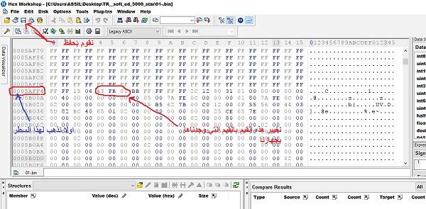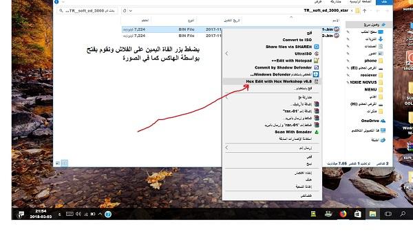 *الان بعد تحميل فلاش من النت ويكون من اسماء الرسيفرات السابقة بالاعلى نقوم بفتحه بالهاكس ونقوم بالتعديل انظر الصورة