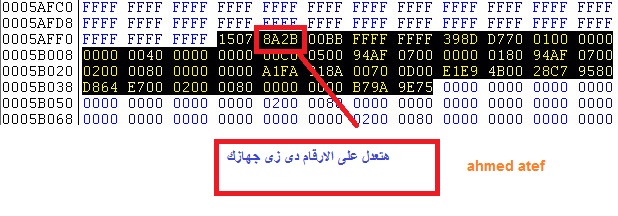 اذهب للسطر 0005AFF4 لنه يوجد به ايدي الجهاز